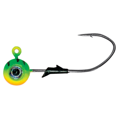 The Lazer Sharp Pro-V Eagle Eye Jigs are versatile high-performance jigs that will put more fish in the boat. The head design features large holographic eyes that grab attention. The 90-degree leg is fantastic for many presentations, including swimbaits, snap jigging soft plastics, live bait, and presenting baits vertically utilizing forward-facing sonar. The double-barbed plastic keeper ensures soft plastics stay appropriately rigged. Available in standard models with an exposed hook for open water situations and weedless with a weed guard protecting the hook point from snags and vegetation.