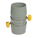 Sewer hose coupler for quick connection of two hoses has tapered ends to allow hoses to slide on easily for an odor tight seal. Tapered ends accept all 3 inch sewer hoses and slip-over fittings. Stores with hose in standard 4 inch bumper.