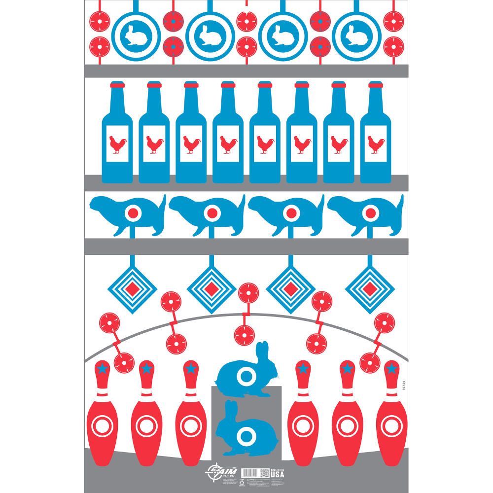 Experience the pinnacle of shooting target innovation and versatility with our EZ Aim® Shooting Gallery. Crafted from corrugated stock, this target is "Target-rich" containing 38 different targets on a backerboard, perfectly suited for your range sessions. This target allows the shooter to plink away at a large variety of targets, providing ample supply to keep the fun going. Provided in the pack are 20-shooting targets, each measuring 23 x 35-inches. Elevate your shooting experience today with the EZ Aim® Shooting Gallery Target & Backer. Discover precision, durability, and endless shooting entertainment like never before.