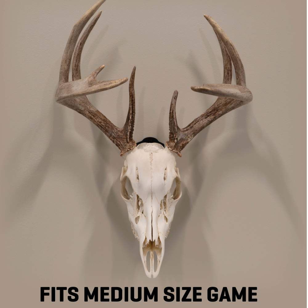 The EZ Mount Skull Peg Hook is your versatile solution for showcasing European-style skulls with antlers and organizing your gear with style. This mount hanger not only elegantly displays deer-sized game on any wall but also serves as a reliable holder for clothing or outdoor equipment. Searching for a convenient spot to hang your cherished hat, jacket, or pack? Look no further than the EZ Mount Skull Peg Hook. Crafted from solid steel, it’s sure to endure the strength of your display. The pack includes mounting screws and wall anchors, making installation a breeze. Elevate your trophy displays and effortlessly organize your gear with the EZ Mount Wall Hanger and Utility Hook!