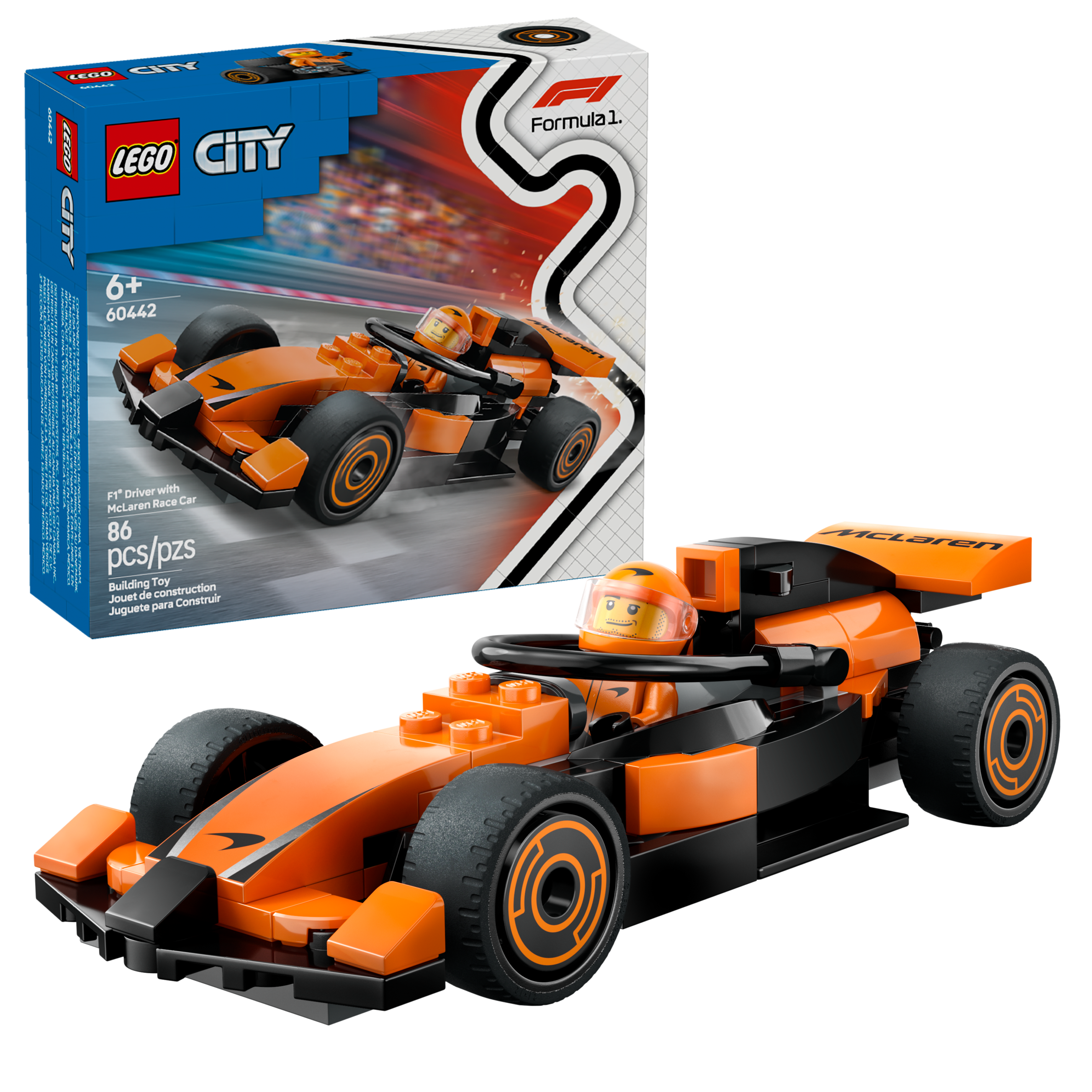 Kids can dive into the excitement of high-speed racing with the LEGO® City F1® Driver with McLaren Race Car (60442) set. Perfect for race enthusiasts aged 6 and up, the mini vehicle toy features a super-aerodynamic Formula 1® design with slick tires and comes with an F1 McLaren driver minifigure for imaginative play and storytelling. Discover the dynamic lineup of F1-themed LEGO sets for kids and adults.