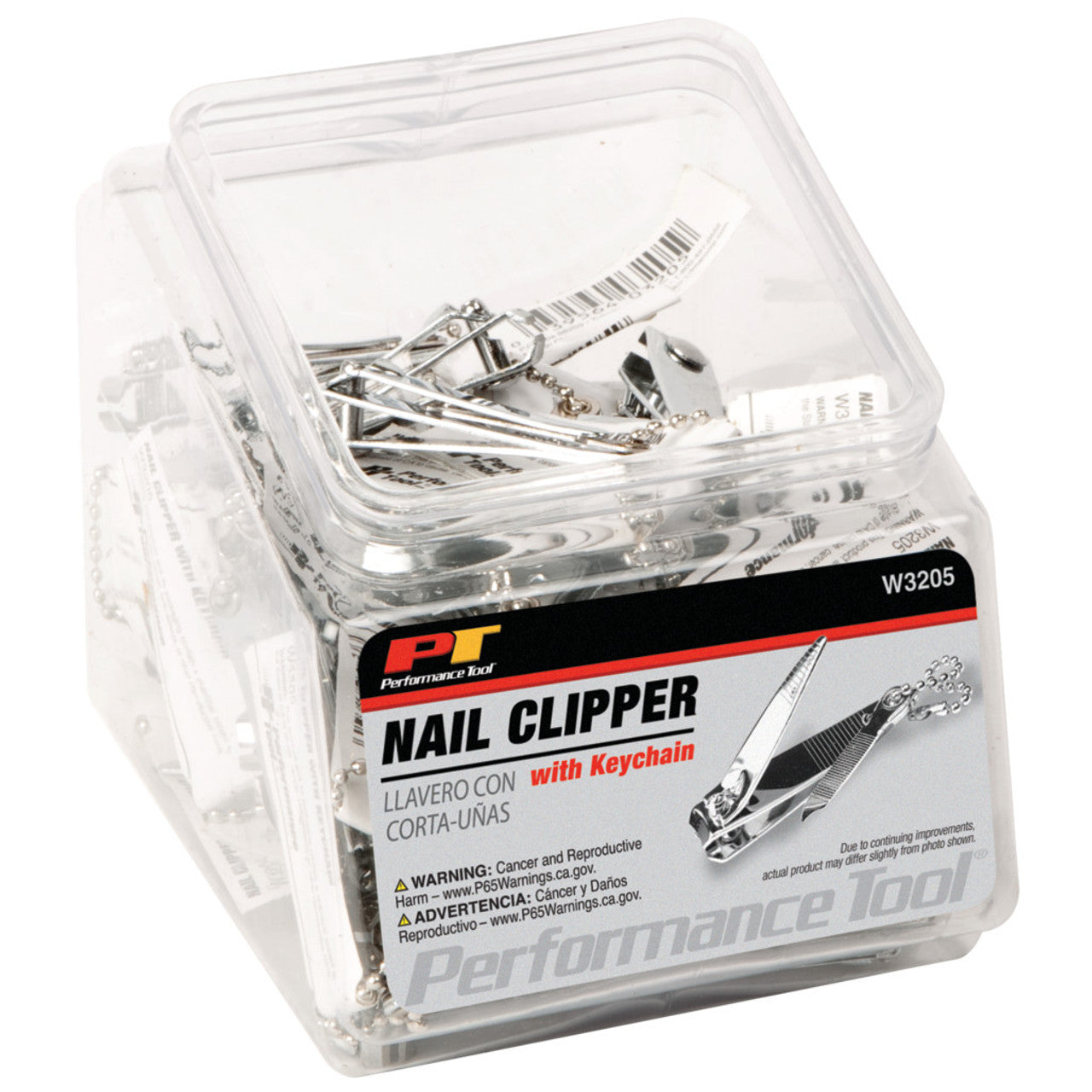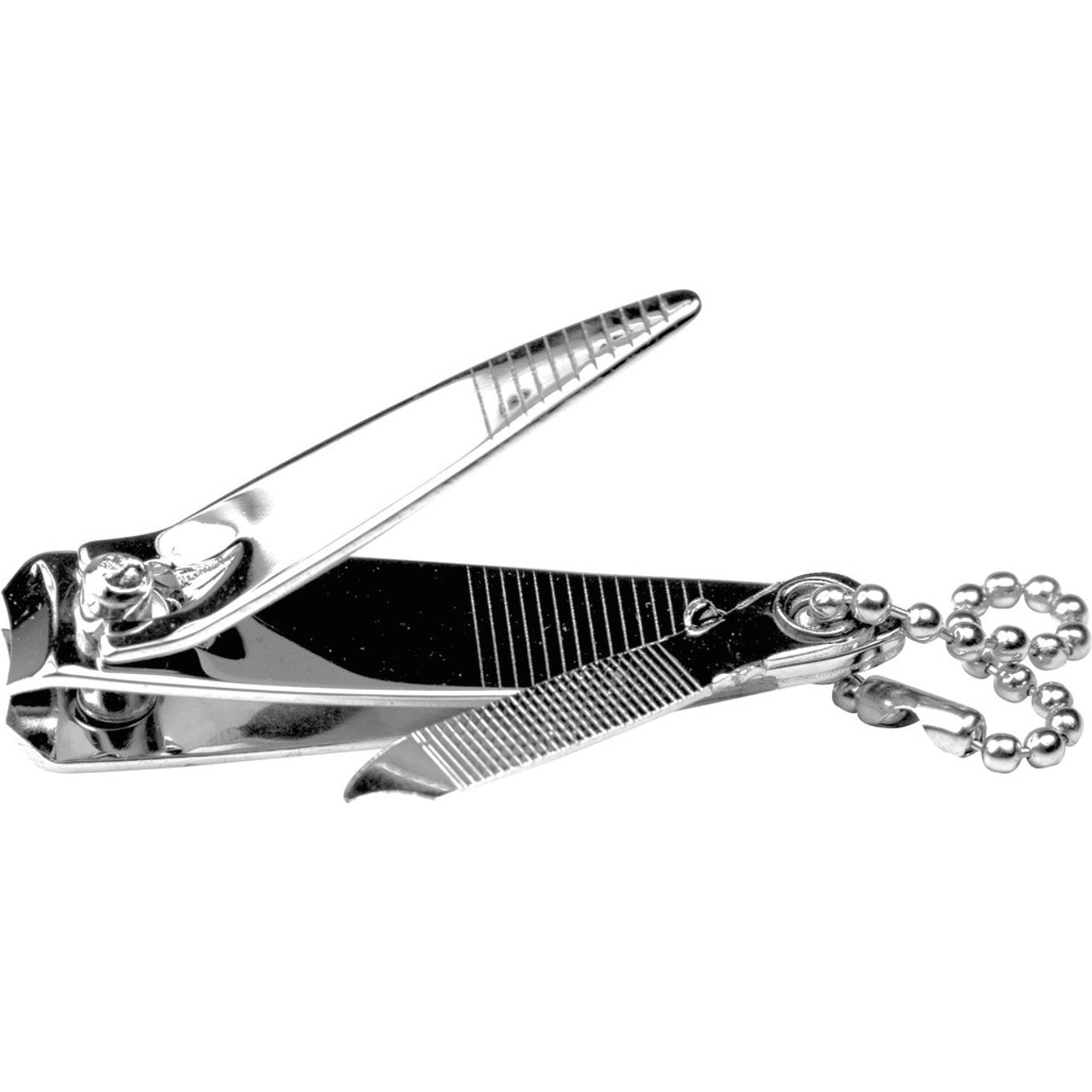 Keep your nails trimmed and filed with this convenient key chain nail clipper. Ball chain key ring.