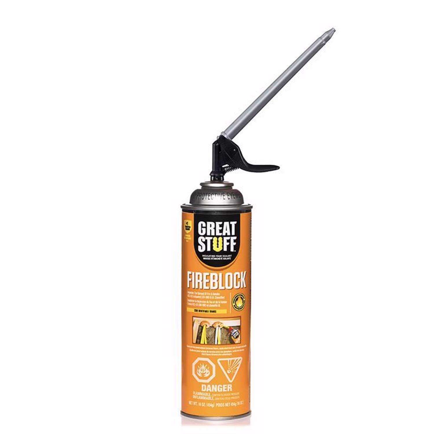 Great Stuff Fireblock Insulating Foam Sealant is a ready-to-use, minimal-expansion insulating foam sealant that fills and insulates gaps up to 3/4 inch to restrict airflow. This distinctly orange solution seals electrical wiring run through wall studs as well as service penetrations in walls and between floors to provide a simple, cost-effective way to maintain the continuity of an approved fire block material throughout the house.
