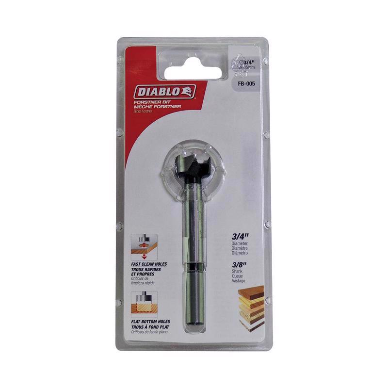 The Diablo 3/4 in. High-Speed Steel Forstner Bit drills straight, angled and overlapping holes in all types of wood without splintering. The sharp center spur accurately locates the center of the hole without walking on the material.