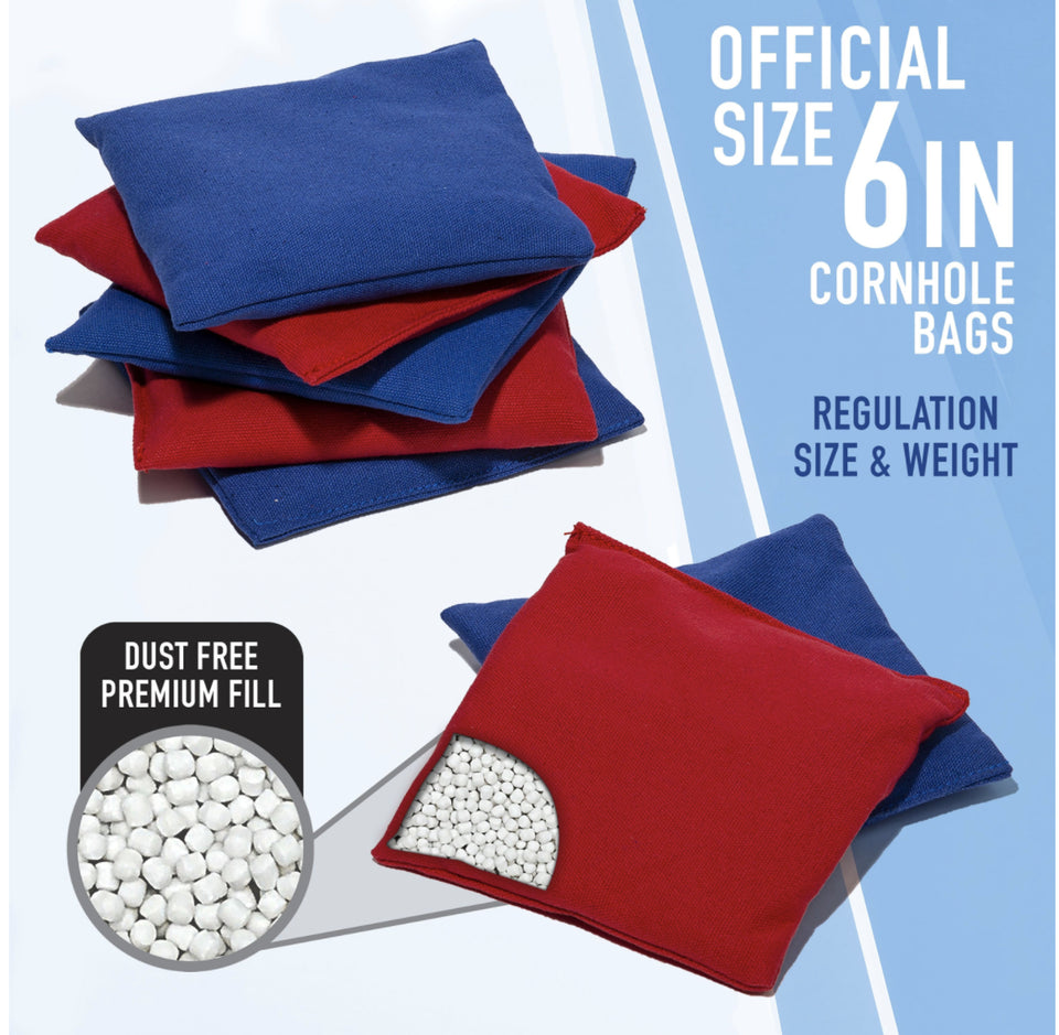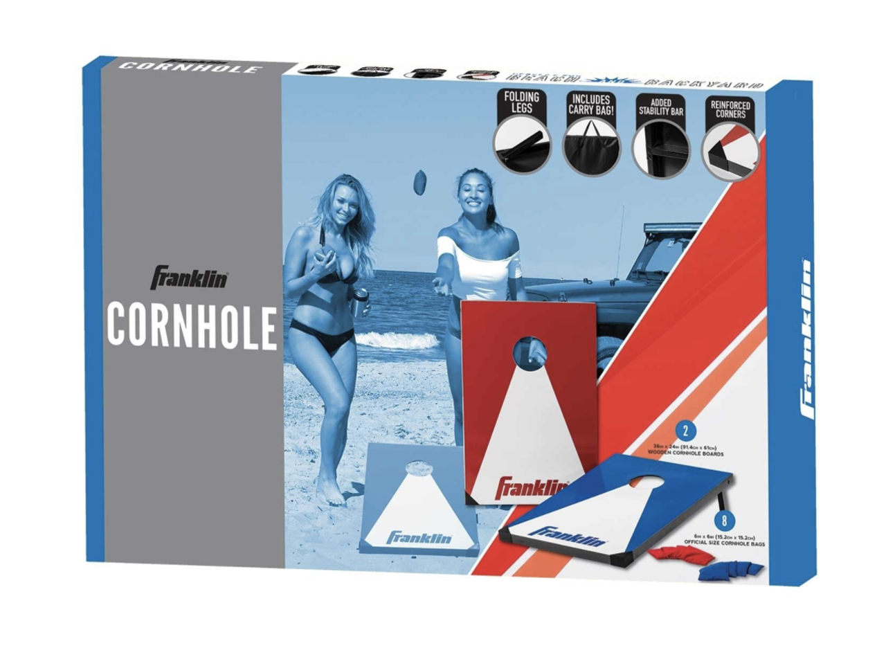 The 36" x 24" Cornhole set from Franklin Sports is all you need for a sturdy cornhole game that can be quickly assembled (no tools required!) and easily transported! The set includes (2) large targets that measure 36" x 24". Designed with a high quality MDF surface and reinforced corners, this set is built to last. (8) official size 6" x 6" bean bags are included in the set. Cornhole is a classic outdoor game that can be used on grass, sand or any soft surface! Make sure to include this at your next picnic or backyard BBQ!