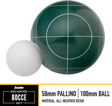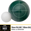 - OFFICIAL SIZE AND WEIGHT: These 100 mm bocce balls and 50 mm scoring pallino are regulation sized and weighted so you can get the authentic bocce experience