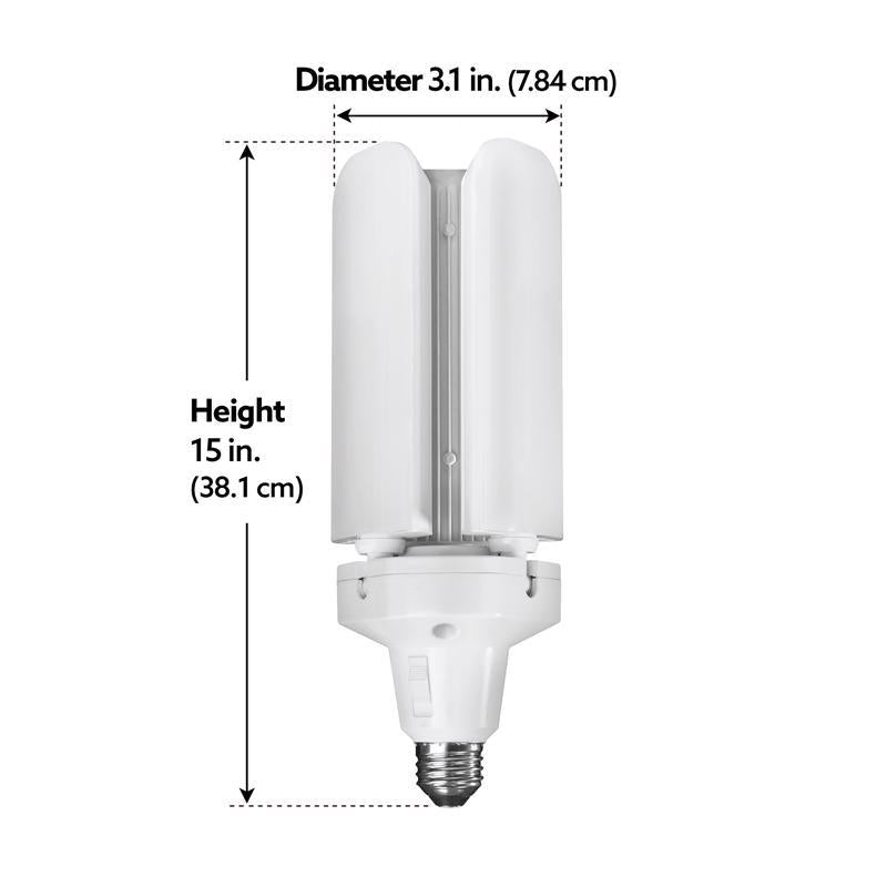 • 4000-lumen light is 500% brighter than 60-watt incandescent bulbs, ideal for garages, attics, workshops, patios, or other dark indoor and outdoor spaces