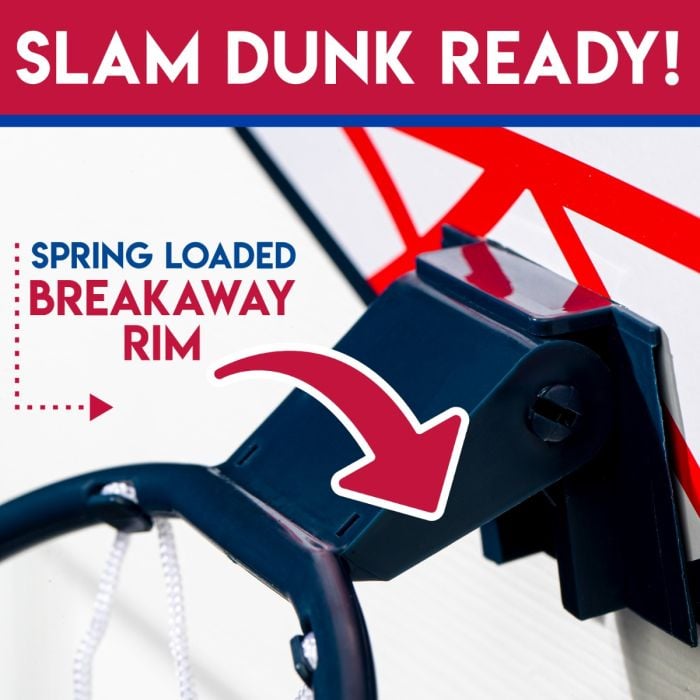 - KIDS BASKETBALL SET for over the door, featuring a SPRING LOADED "breakaway" rim!