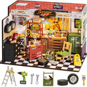 - DESIGN IT YOURSELF: The mini dollhouse kit includes lifelike accessories and scenes that make you feel like you're in a real workshop: Rack full of tools and instruments, tool box, wrench, ruler, saw, wheels, etc. You can paint, cut, or paint the tiny accessories to create your own unique design.