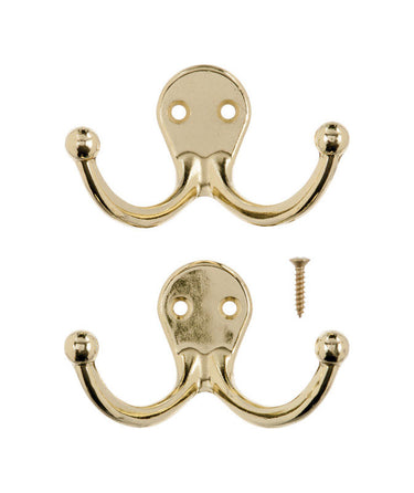 Ace 1-3/4 in. L Bright Brass Yellow Brass Small Double Garment Hook 2 pk