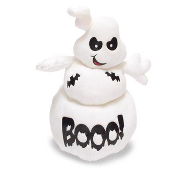 Who you gonna call? Spooky Jr. is a plush, glowing ghost that spins to the song "Ghostbusters." He has Halloween themed embroidery that includes a spooky face, bats, and the word "BOOO!"