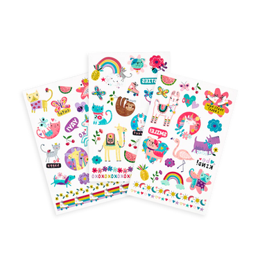 Show off your love of friends of all kinds with Tattoo-Palooza temporary tattoos. The Funtastic Friends glitter tattoos set comes with 3 temporary tattoo sheets filled with fun animal friends. That’s over 50 tattoos of colorful llamas, sloths and unicorns to name a few. These temporary tattoos are easy to apply and last up to 5 days.