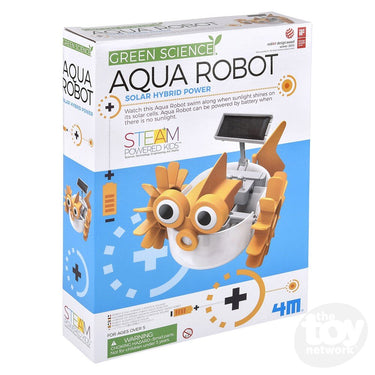 Build this Green Science - Aqua Robot that works with 1 AAA battery or solar power charge. Swims in most bodies of water. Great beginner robotics kit.