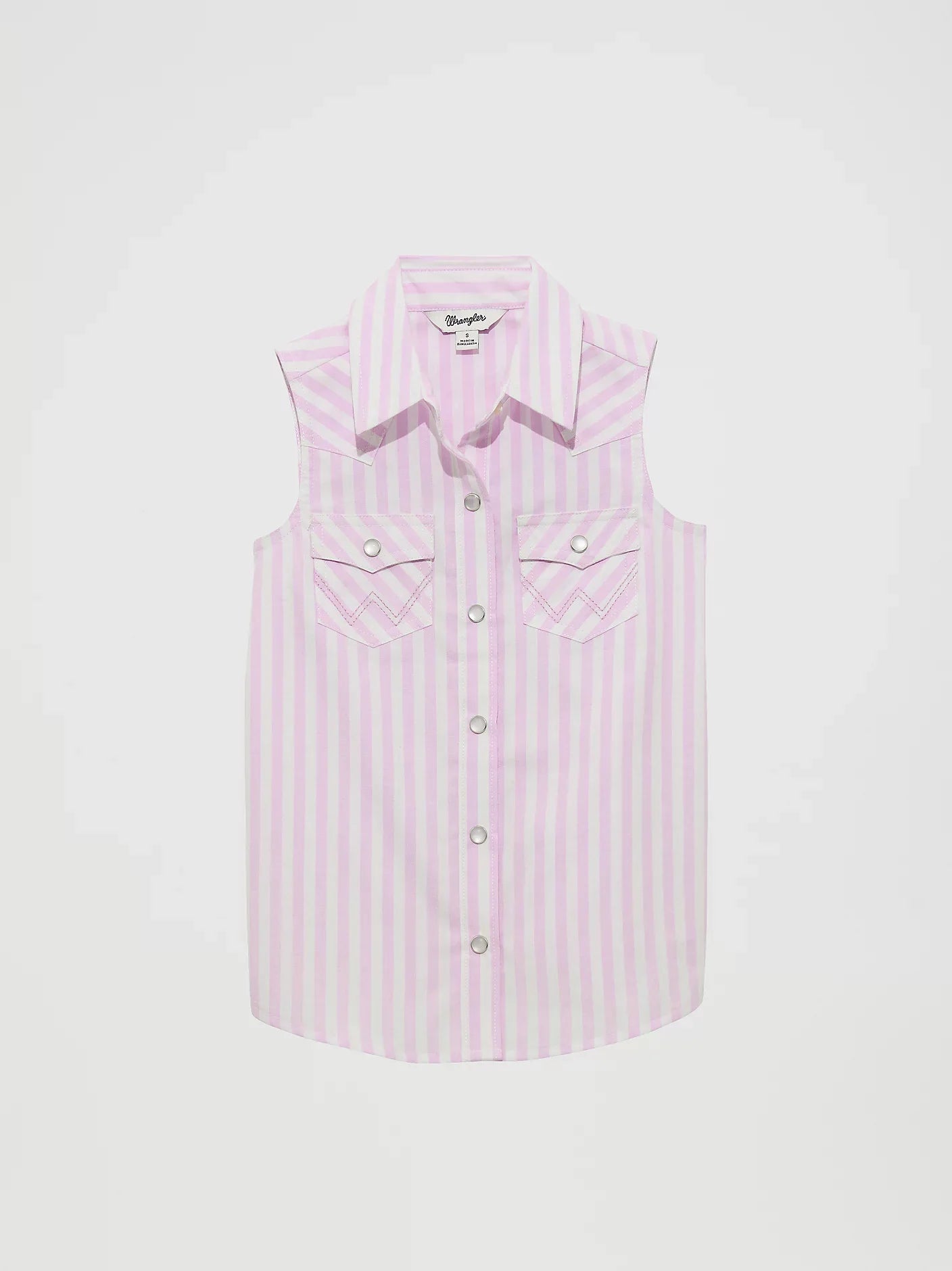 Wrangler Girl's Sleeveless Stripe Snap Shirt (Purple) Size XL