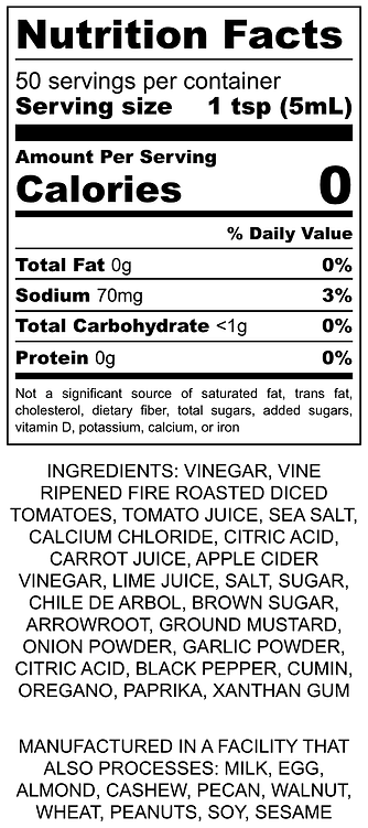So many of our sauces are complex flavors playing together in a symphony. Not this sauce. Sometimes all you need is a simple, downhome blues song - tomato, carrot, vinegar with chile de arbol and all the usual taco sauce flavors constructed with one purpose in mind...to make a happy taco!
