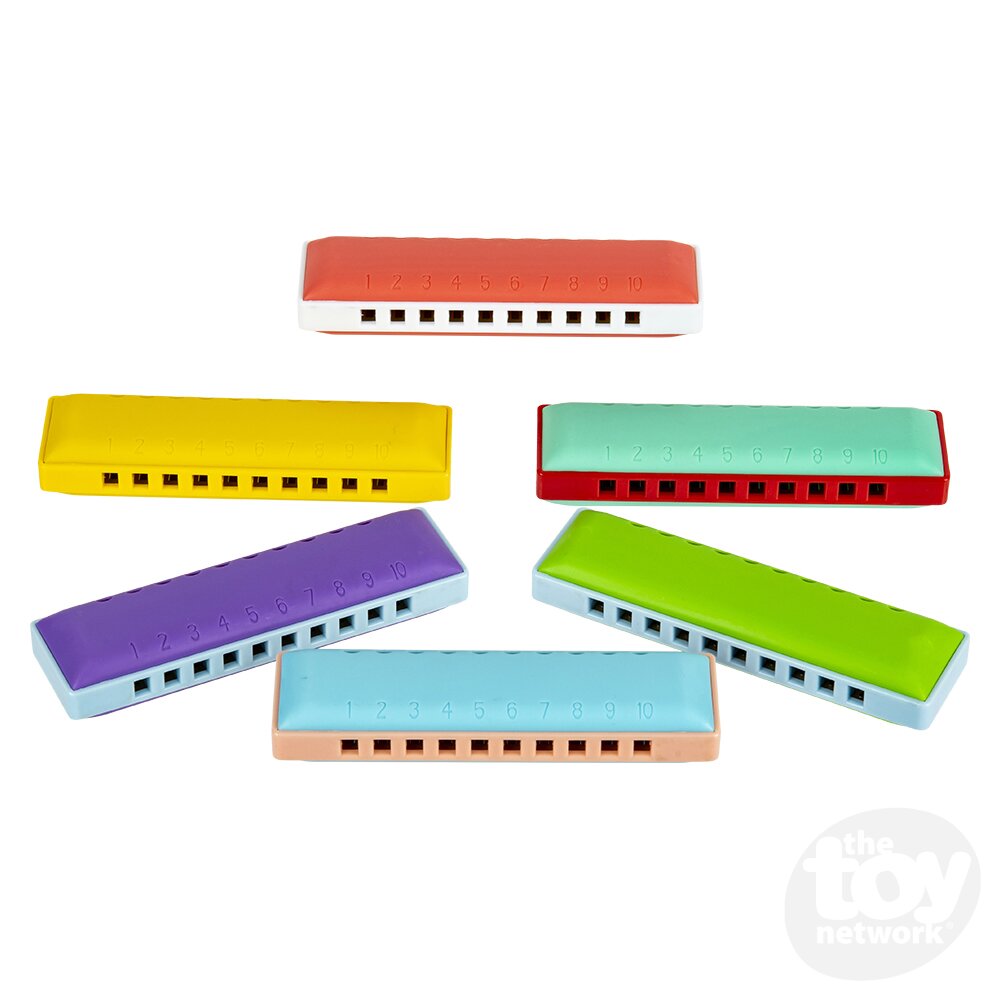 These classic harmonicas are the perfect toy for every young musician to start with. Assorted colors. Each piece comes in a carrying case.