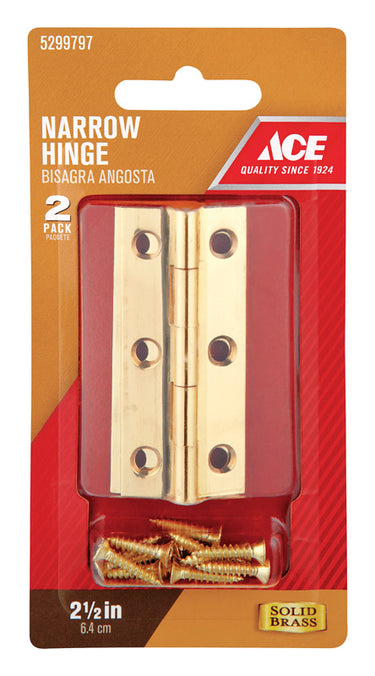 Ace 1-1/2 in. W X 2-1/2 in. L Polished Brass Brass Narrow Hinge 2 pk
