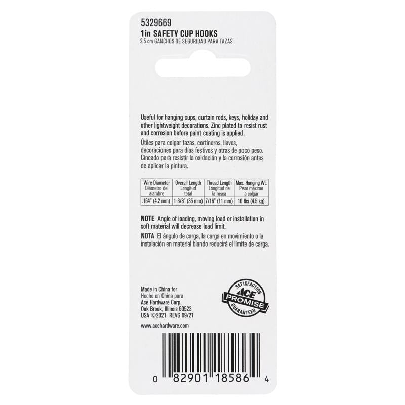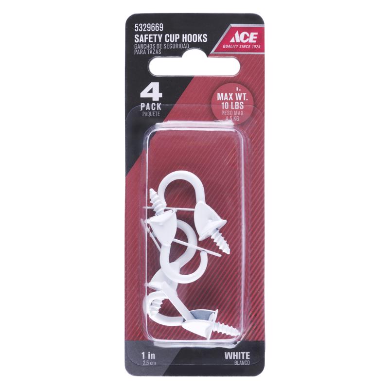 Ace Medium White Steel 1.375 in. L Cup Hook 10 lb 4 pk