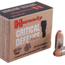 Since their inception, conventional hollow point pistol bullets have performed well, but have never delivered 100% reliability, especially in self-defense situations. The patented Flex Tip® technology used in Critical Defense® ammunition eliminates the clogging and inconsistency that often plagues hollow point bullets. Hornady® achieved this by using the same tip material used in LEVERevolution® ammunition.