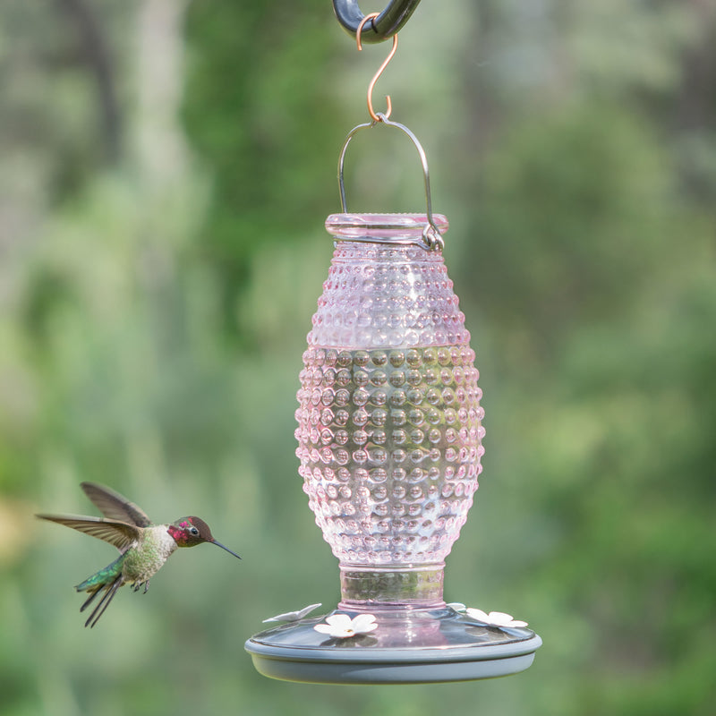 With the Perky-Pet cranberry hobnail vintage hummingbird feeder you’ll get a functional feeder that hummingbirds love all in one show-stopping package. The beautiful pale cranberry-colored bottle with a vintage hobnail design and you're sure to love. Plus, with 4 daisy-shaped feeding ports and a 16 oz. nectar capacity, your hummingbirds will love it too.