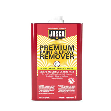 Jasco Premium Paint & Epoxy Remover Non-Methylene Chloride formula is an extremely strong stripper that effectively removes paint, varnish, lacquer, shellac, epoxy, urethane, latex or any synthetic coating. It can be used on wood, metal, concrete and masonry. The semi-paste formula works in 15 minutes or less and clings to vertical surfaces.