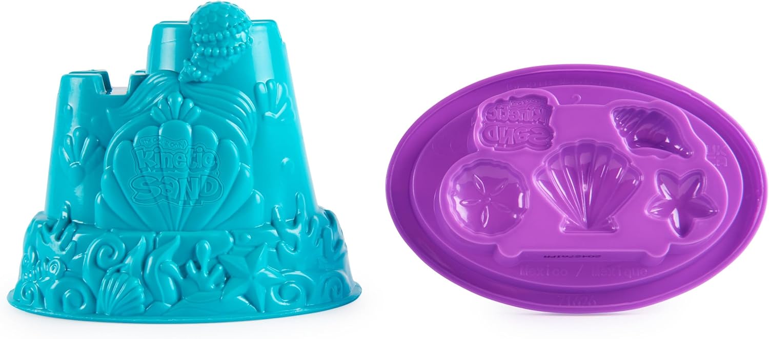 The Kinetic Sand mini castle mermaid is here. Open the mermaid lock to discover a shovel to dig into the magical Shimmer Sand. The lock is full of shimmering kinetic sand, 1 special tool and 3 hidden gems. Use the cutter to make shells with the colorful sand. Find the rare opal shell at the Kinetic Sand. When you're done playing, store the magic sand in the mermaid lock for easy cleaning. Kinetic Sand is the magical play sand. Compared to modeling clay, this kinetic sand never dries out, so Kinetic Sand allows you to play tactile independently for hours. Let them slide through your hands, he is so satisfying that you can't stop. Kinetic sand is made of real sand and is non-toxic and hypoallergenic. Compact and easy to clean. Kinetic Sand develops creative and sensory skills and allows children to create anything they can imagine. Kinetic Sand toy for boys and girls aged 3 years is a great gift for children.