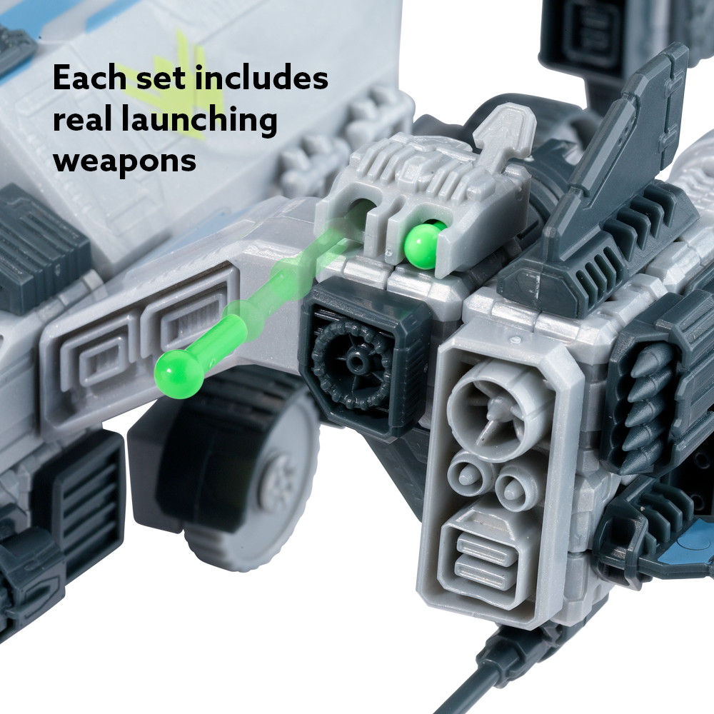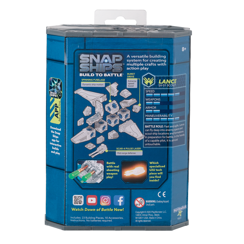 Now YOU can Build to Battle! Snap Ships is a versatile building system for creating multiple crafts with action play, and all sets and pieces are interchangeable, so kids can build however they want. The Snap Ships set for Lance includes instruction for two different builds that you assemble yourself and then engage in battle with real shooting weapon play! Lance SV-51 Scout is known to be fast and agile, and in the hands of a capable pilot such as Atam, the Forge’s alien tech guru, it is almost untouchable. Add the mysterious UJU tech piece that’s included, and you’re sure to defeat the Komplex!