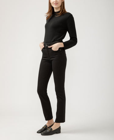 Searching for the perfect curvy fit? Look no further than Avery, now made with our black Luxe Stretch denim. designed to flatter those with a smaller waist and fuller hips. The everyday high rise provides some extra coverage, while a contoured waistband prevents gapping. Finished with ease in the hip and thigh for curve-hugging perfection. Straight leg jeans with an inky black wash 10. 25 high rise Luxe Stretch is a super stretch denim designed for ultimate comfort and performance. Easy to wear with incredible softness inside and out, it keeps its shape and conforms to your body for a fit that looks as good as it feels. 5-pocket styling with a zip fly and button closure 13 leg opening