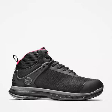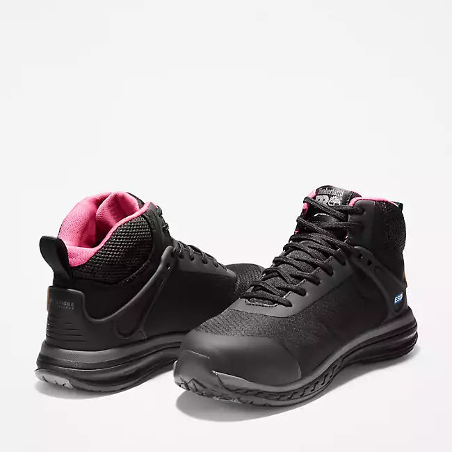 Built specifically for a comfortable women's fit, our metal-free Timberland PRO® Drivetrain athletic work boots offer lightweight comfort, but they're all business when it comes to protection. Not only are their abrasion-resistant ripstop mesh uppers tough enough to handle working on your feet all day, they feature composite safety toes, TPU toe overlays, and are designed for Electro Static Dissipating (ESD) compliance to minimize hazards from static electricity buildup. For comfort, we added Anti-Fatigue Technology for all-day shock absorption and energy return and a breathable, moisture-wicking lining made of ReBOTL™ material containing at least 50% recycled plastic. Plus, their lightweight outsoles are made of heat-, oil-, slip-, and abrasion-resistant, non-marking, all-weather TPU for enhanced traction.
