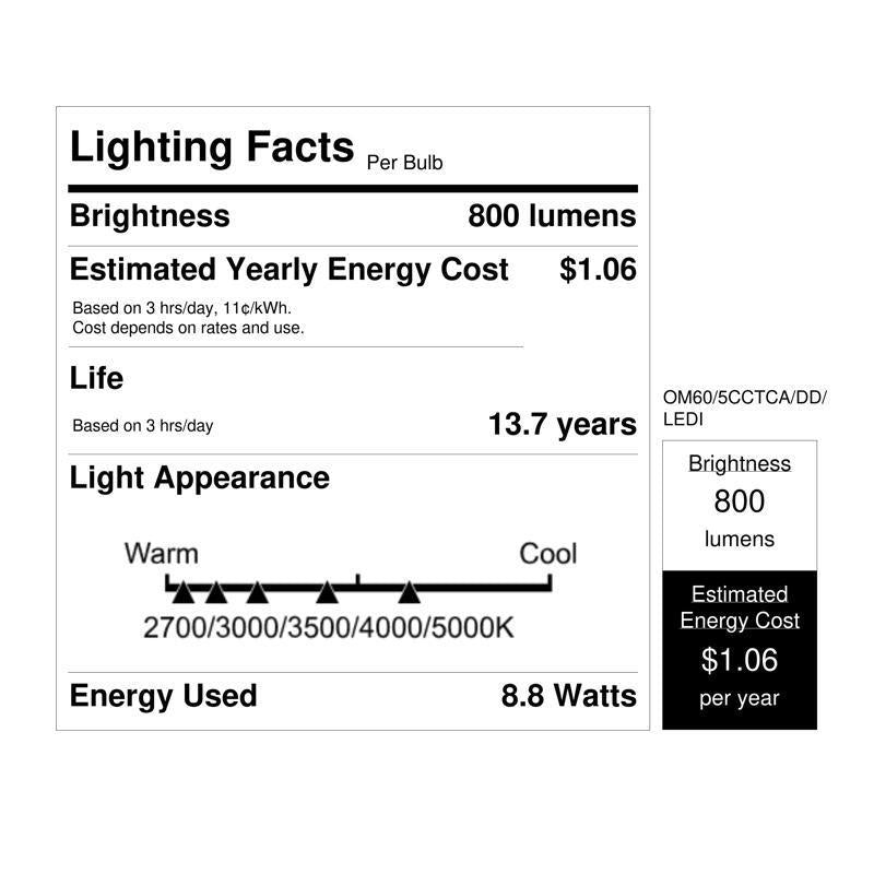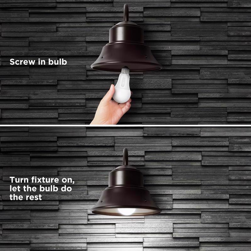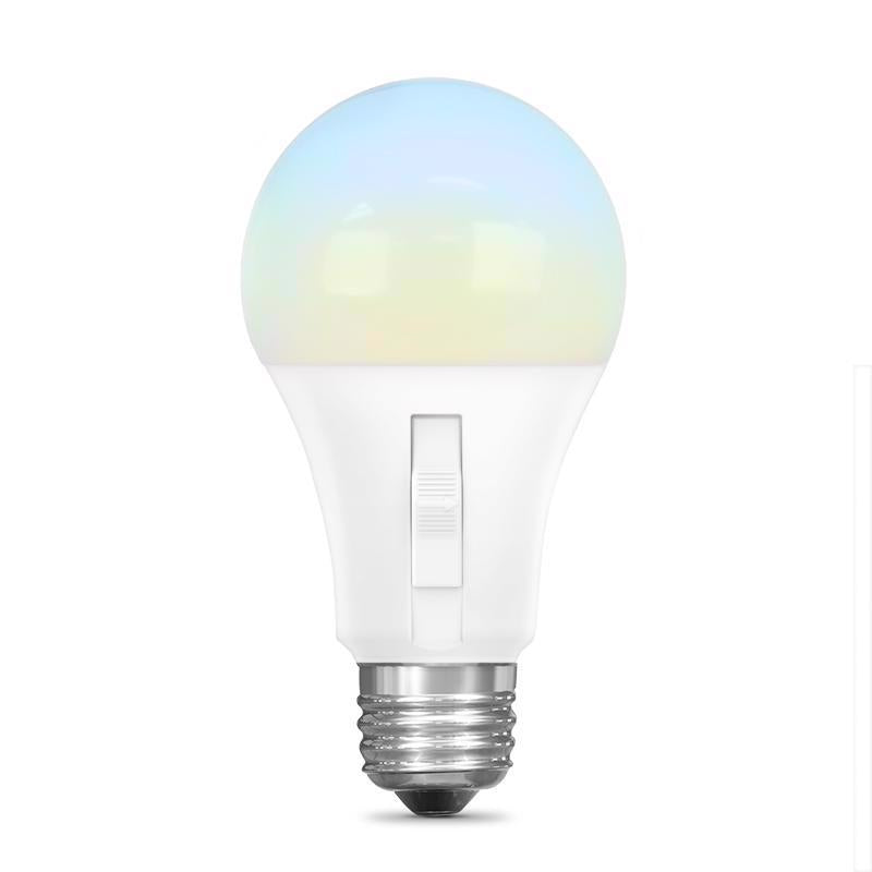 Get a convenient outdoor light that turns on automatically at night with the OM60/5CCTCA/DD/LEDI Adjustable White Light Bulb from Feit Electric. This 60-watt equivalent LED bulb features an integrated dusk-to-dawn sensor that detects sunlight. It turns on when the sun goes down and off during the day, hassle-free lighting for your outdoor space. Install it on patios or in other outdoor fixtures with access to sunlight and never worry about turning on the lights at night. Not sure which color to choose? A toggle on the bulb lets you select the perfect color temperature for your space. Select 2700K Soft White, 3000K Bright White, 3500K Neutral White, 4000K Cool White, or 5000K Daylight. Whether you want cool light for added security or warm light for relaxing outdoors, you can get the right LED light in any space. No additional hardware or special apps are required. Upgrade your outdoor areas to Adjustable White Dusk to Dawn LED Bulbs to experience the convenience of having the perfect shade of light every time and the added benefit of energy savings for years to come. *