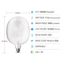 Add a decorative touch to your home or business with an oversized curved filament LED light bulb. An elegant figure-7 shaped filament is housed inside clear glass, evoking the feel of an original Edison-style lighting. This bulb puts out 1050 lumens of daylight color temperature light, perfect for energizing the day. Adjust the brightness to suit your mood and enjoy the best of both worlds with vintage style and latest LED technology. The LED light is rated to last up to 15,000 hours and uses much less energy than equivalent incandescent light bulbs.