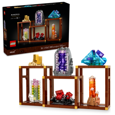- Unique living room decor – Celebrate the beauty of nature with the LEGO® Ideas Mineral Collection, featuring colorful recreations of 6 minerals, plus 3 display shelf units