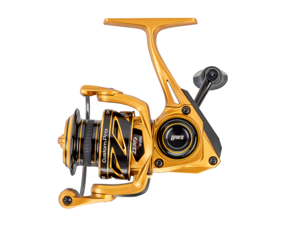 Supplying astoundingly smooth operation with every turn of the handle, Lew’s Custom Pro Spinning Reel is up for any job at any time. Striking the ideal balance between smoothness and strength, the Custom Pro Spinning Reel features 11+1 premium stainless steel bearings, a AccuGear™ machined aluminum drive gear, and a hybrid carbon drag system. The aluminum body and sideplate along with the C60 Carbon skeletal rotor keep the gears protected and in perfect alignment. The lightweight double anodized, braid ready aluminum spool is crafted to withstand high amounts of pressure from any line weight, and the internal reel components are lubricated with Speed Lube® for maximizing seamless performance. The reel also features a reversible aluminum handle with Pro Power Knob for a customized, comfortable experience.
