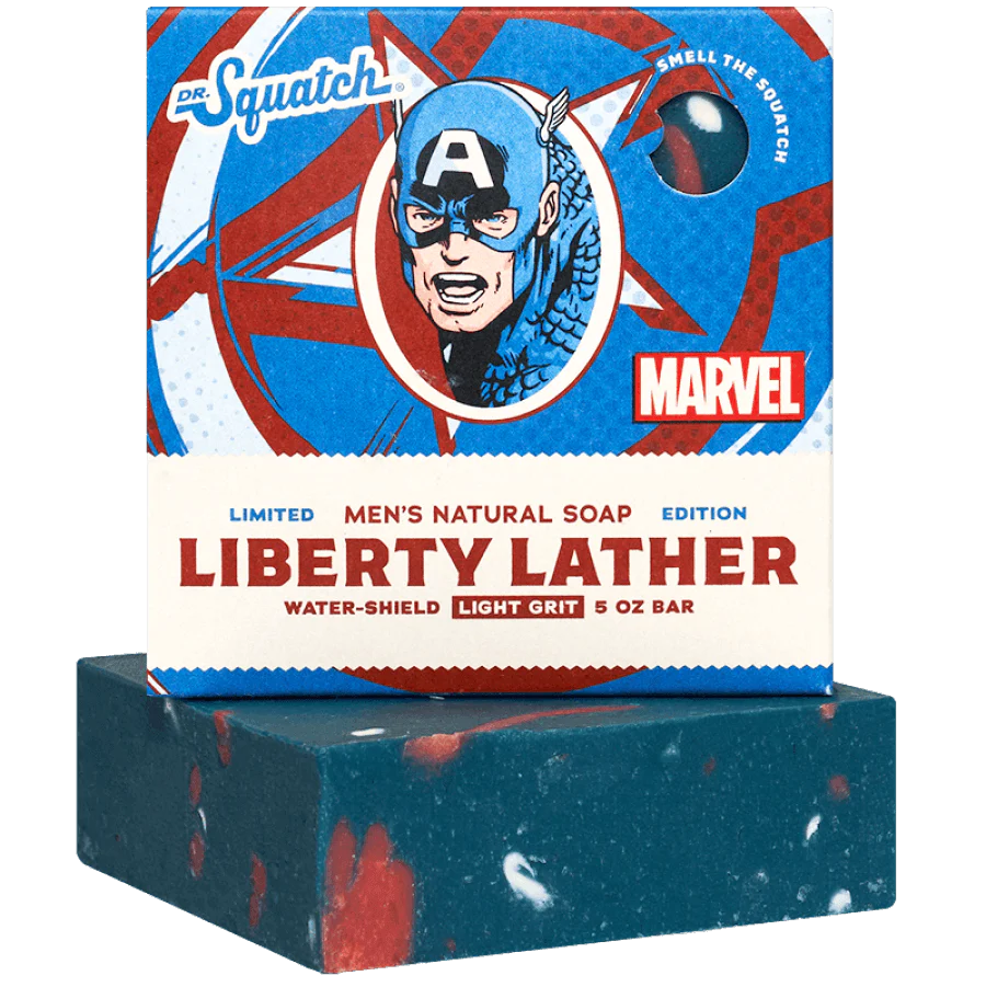 Join the fight for justice (and a better shower) with this heroic bricc inspired by Captain America. This fearless lather features a courageous blend of conditioning Water-Shield, exfoliating Pumice, and antioxidant Serviceberry, plus energizing scents of citrus and cedarwood.