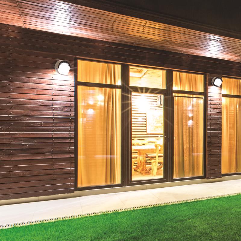 All the advantages of advanced LED energy-saving technology and high performance exterior security lighting meets timeless style with this beautiful outdoor round S5RWM/850/DD/BZ wall light. This collection features a contemporary yet casual design with a solid bronze finish that complements the exterior decor of any home and turns on at dusk and off at dawn for added convenience and energy savings. The sturdy, heavy duty rust proof aluminum construction along with high quality polycarbonate lens provides enhanced durability to ensure the long life of the fixture. These outdoor lights install easily and deliver welcoming, safe and reliable exterior lighting.