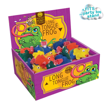 Funny frogs in assorted colors – squeeze them and their tongues flick out as if they are catching flies!