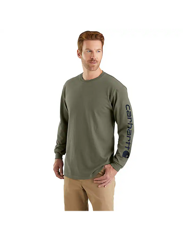 Home Carhartt Loose Fit Heavyweight Long-Sleeve Logo Sleeve Graphic T-Shirt (Dusty Olive) Size 3XL