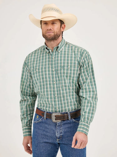 Wrangler Men's George Straight Western Shirt (Grassy Plaid) Size L