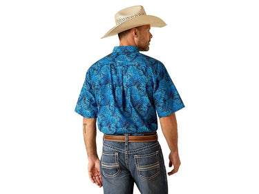 Enliven your cowboy style game while celebrating superior comfort and breathability all day long wearing the Ariat Wrinkle Free Kylo Classic Fit Shirt. Crafted in pure cotton, the shirt features a wrinkle-resistant finish in combination with taped seams. It is built with Greater Arm Mobility to enable you to move freely. With the bold and bright leaf print all over, the piece looks attractive and interesting.