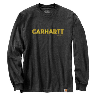 A dependable tee for work days and weekends, this men's long-sleeve t-shirt features Carhartt graphics across the chest. The heavyweight, cotton-blend jersey fabric is soft and durable. The generous, loose fit gives you plenty of room to move.