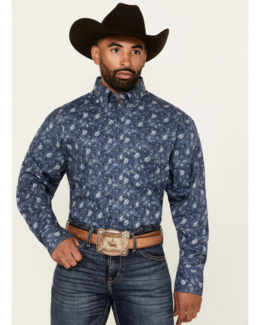 Wrangler Men's George Straight Western Shirt (Navy Paisley) Size XL