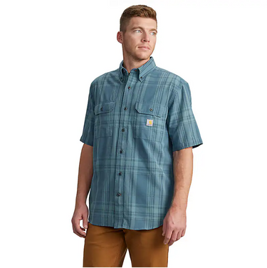 Carhartt Loose Fit Midweight Short-Sleeve Plaid Shirt (Storm Blue) Size XL