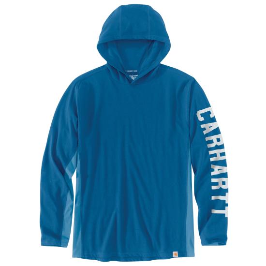 Carhartt Force® Relaxed Fit Long-Sleeve Logo Graphic Hooded T-Shirt (Marine Blue) Size XLT