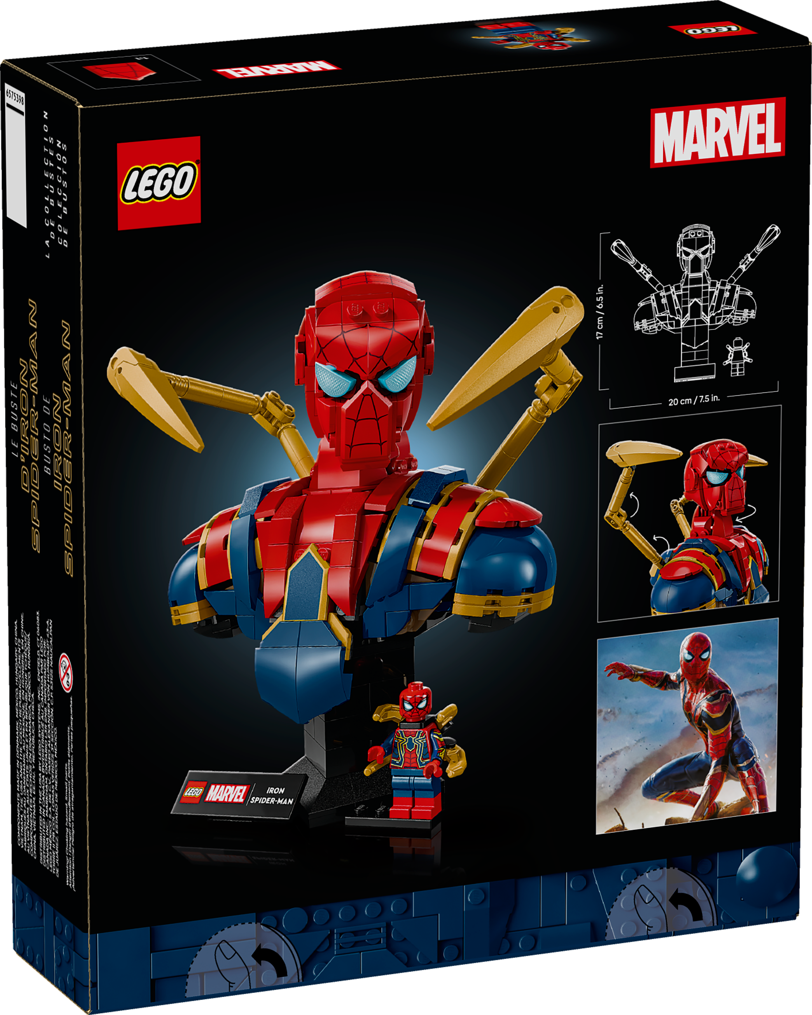• Authentically detailed – The realistic recreation of the celebrated Marvel character features a rotatable head and comes with a LEGO® Iron Spider-Man minifigure