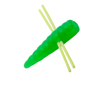 The Maxie Waxie looks unassuming, but definitely packs a punch. This bait is a small, grub shaped bait with two strands of rubber through the center to create a very realistic insect profile. The best way to fish the Maxie Waxie is on a 1/64 oz. Teen-Zee Sausage Head Jig under a cork. Small but mighty, the Maxie Waxie is deadly for a variety of species.