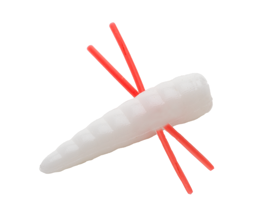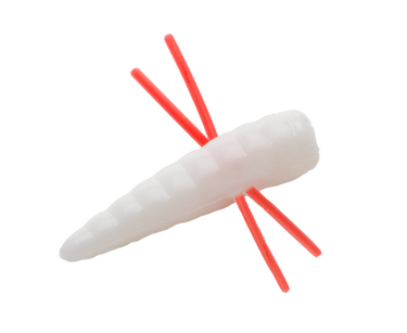 The Maxie Waxie looks unassuming, but definitely packs a punch. This bait is a small, grub shaped bait with two strands of rubber through the center to create a very realistic insect profile. The best way to fish the Maxie Waxie is on a 1/64 oz. Teen-Zee Sausage Head Jig under a cork. Small but mighty, the Maxie Waxie is deadly for a variety of species.