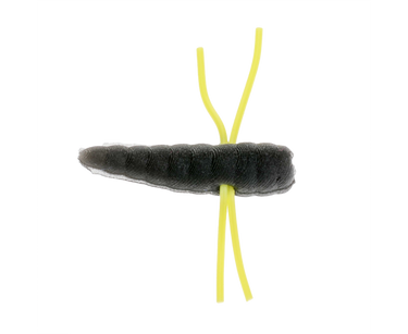 The Maxie Waxie looks unassuming, but definitely packs a punch. This bait is a small, grub shaped bait with two strands of rubber through the center to create a very realistic insect profile. The best way to fish the Maxie Waxie is on a 1/64 oz. Teen-Zee Sausage Head Jig under a cork. Small but mighty, the Maxie Waxie is deadly for a variety of species.