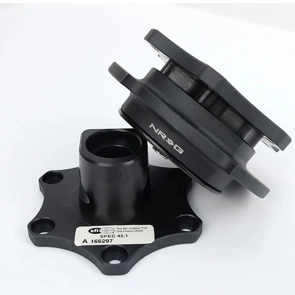This Quick Release Kit is designed for racing and street applications. By allowing removal and replacement of aftermarket steering wheels from the attachment hub quickly, this item prevents envy from turning into stealing, allows a safe and easy operation on the vehicle, as well as exits. Combining with our aftermarket steering wheels and hubs in numerous stealthy styles, this quick release kit even allows a more comfortable steering position for the driver. It features a Ball-Lock type mechanism for the best locking fitting and usability. An innovative Push Pin aids preventing undesired unlocking. Made of the highest quality Aluminum for maximum durability and strength.Parts that carry an SFI approval are certified to be safe for racing. This means they are designed and tested to meet certain safety requirements. The requirements are established by The SFI Foundation, Inc.
