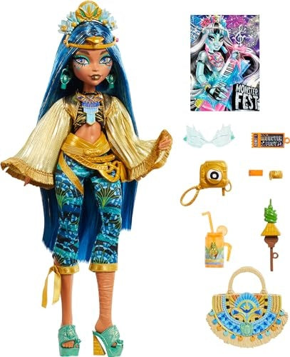 • Monster High Cleo De Nile doll scored a ticket to Monster Fest, the coolest music festival around! With her blinged-out lurk and royal accessories, she can't wait to eat, dance, and be scary!
