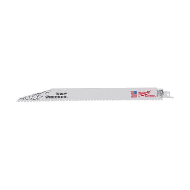 The Milwaukee 12 in. Sawzall Wrecker Blade is designed for multi-material demolition cutting. The aggressive tooth and 6 in. blade design provide the capability to cut nail embedded wood, plastics and a variety of metals with increased speed from an optimized, sharper cutting edge on each tooth. Designed with 25% more high-speed steel and a thicker, more rigid blade body, these blades deliver users increased life and durability. A complete, unset raker tooth on the blade tip creates easier, faster plunging by minimizing walking and bouncing. These reciprocating saw blades have 7/11 TPI.